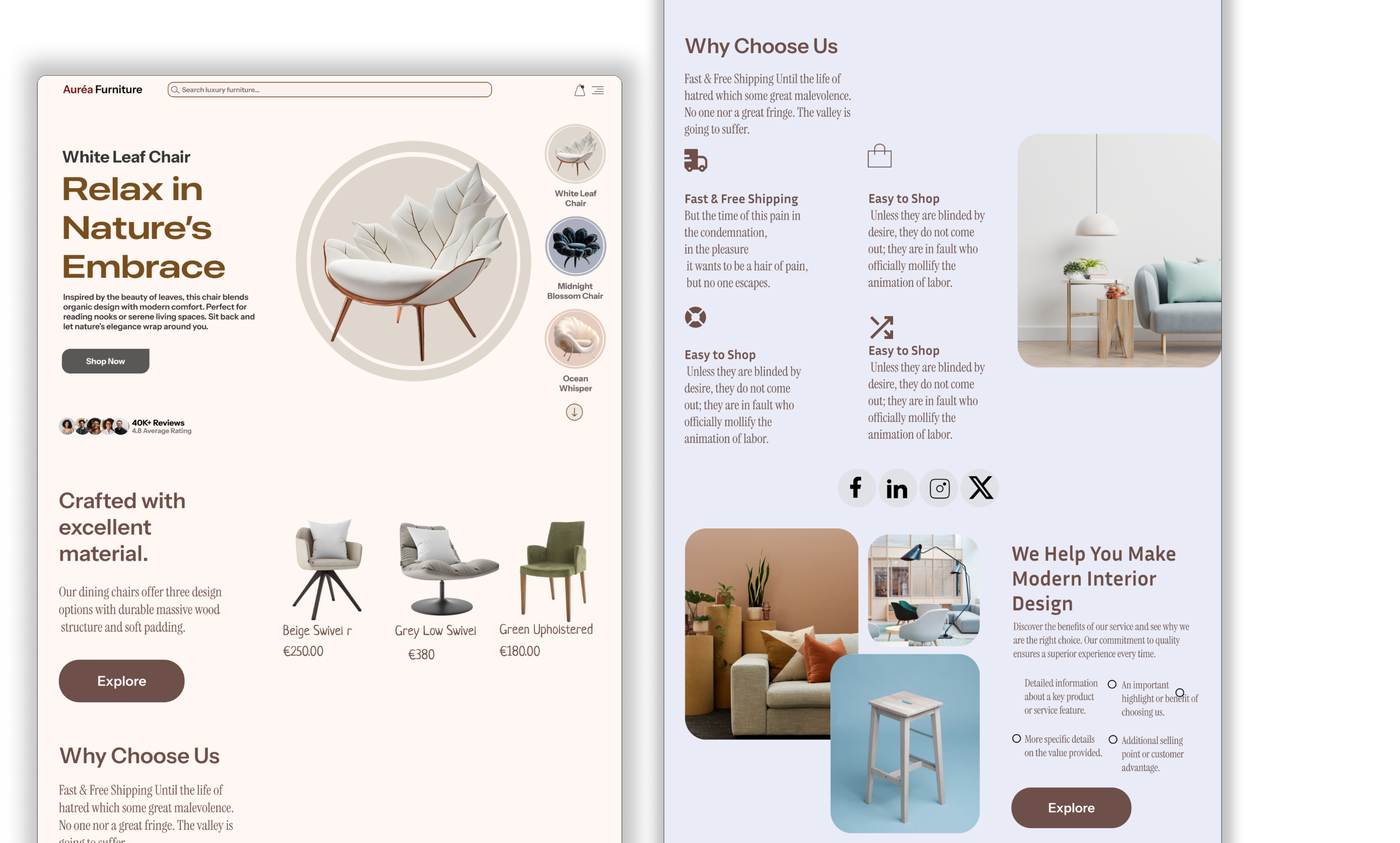 Luxury furniture buyers prioritize Nature's Embrace—organic materials and serene comfort. My competitor audit revealed that most digital interfaces fail by overwhelming users with cluttered grids.
