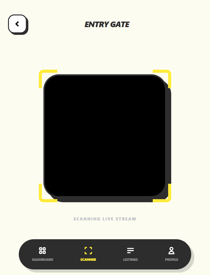 A specialized QR scanner allows hosts to verify vehicles, ensuring site security and automating the checkout process.